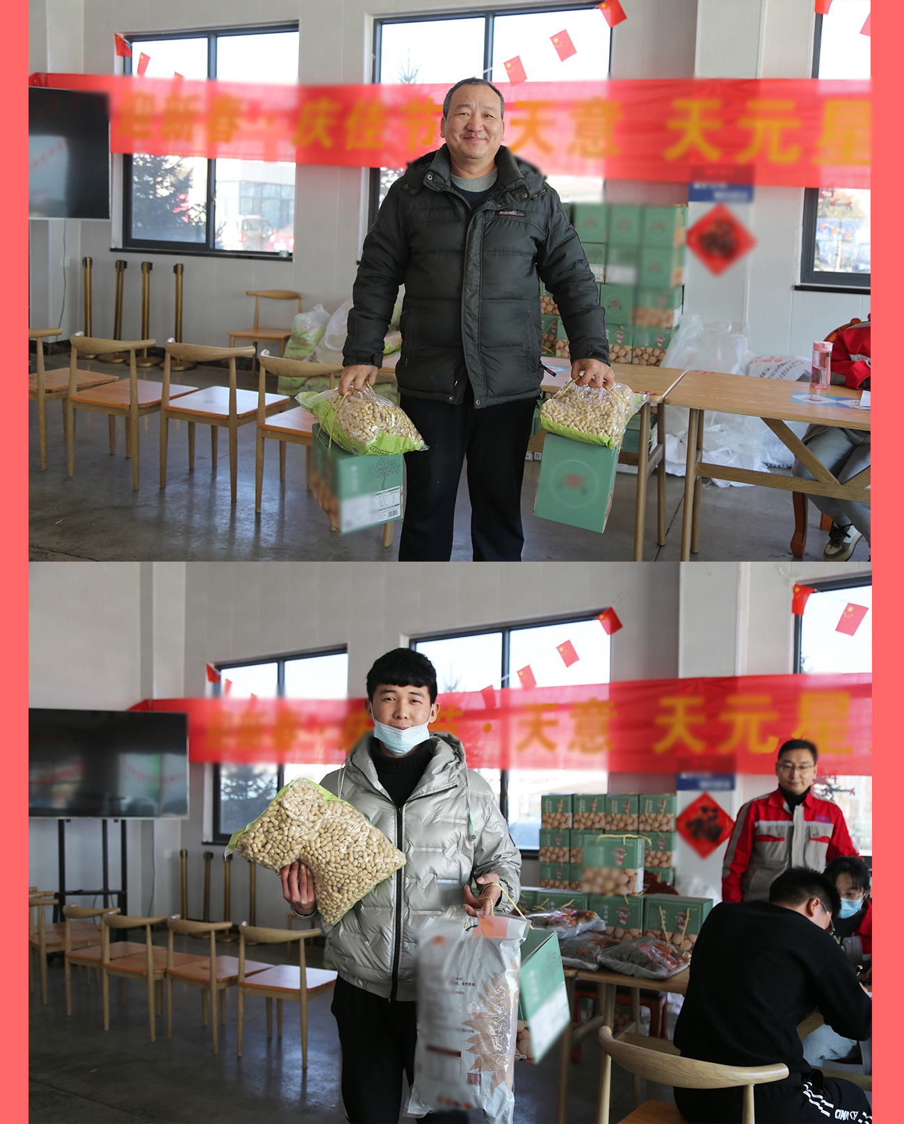 1月17日,我公司在食堂大廳為員工們發放春節福利,天元星在此祝大家新春快樂!